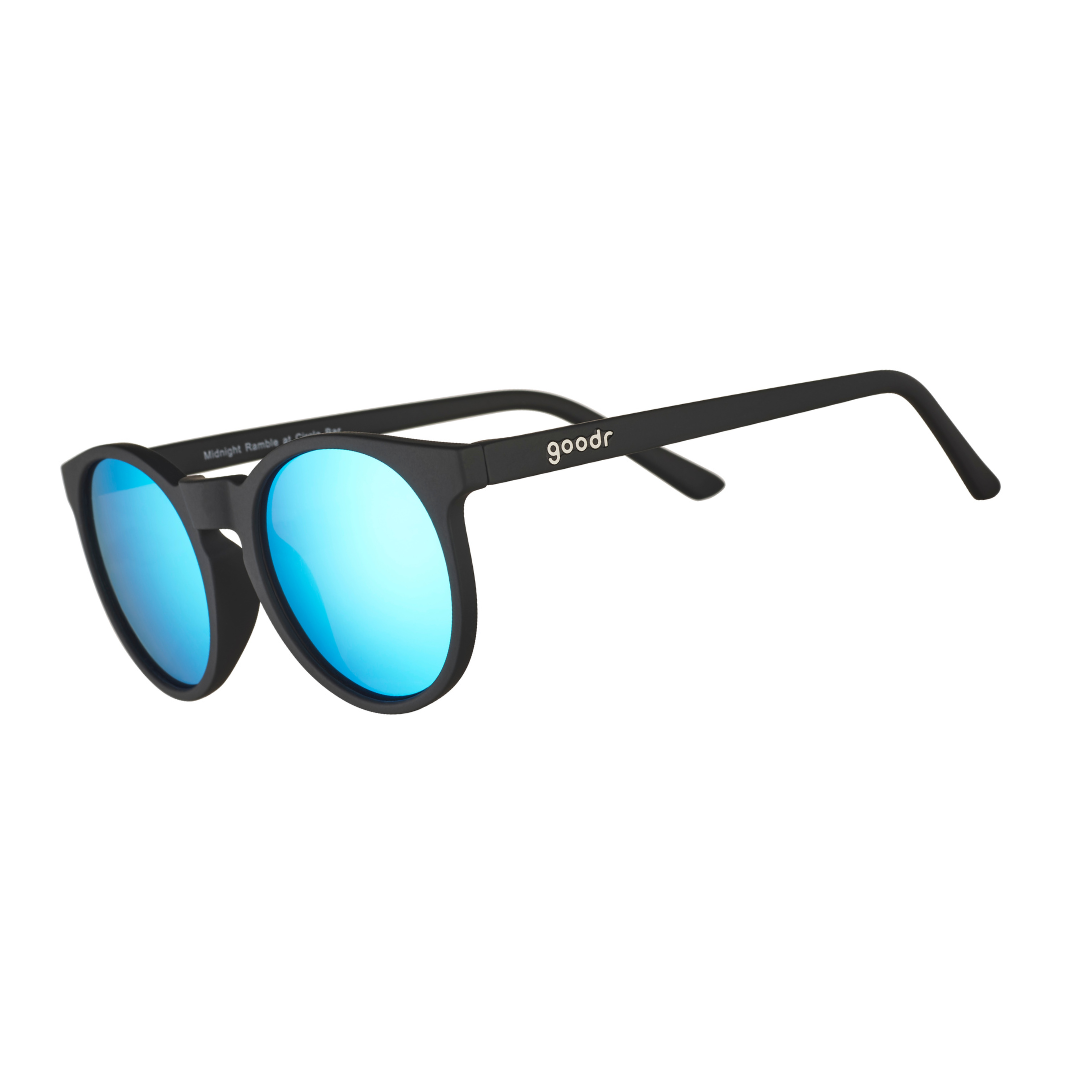 Gafas de sol con lentes azules redondas de inspiración hipster por las que vale la pena divagar. Los modernos marcos redondos retro negros se combinan con lentes polarizadas funcionales con protección UV400.