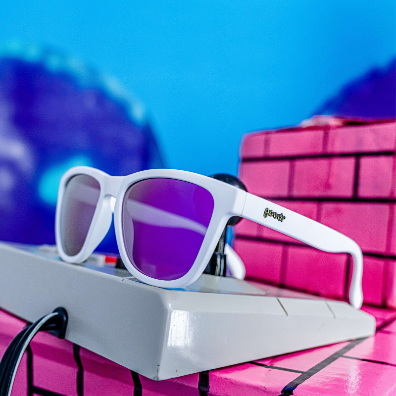 Ignora a los que odian impacientes, hermano. Coloca una ficha y juega ON. Estos marcos blancos OG con lentes reflectantes morados ofrecen protección total UV400 y lentes polarizados. No resbalarás ni rebotarás cuando se desate una pelea en la sala de juegos porque te niegas a rendirte.