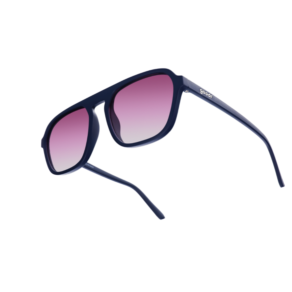 Juramos que nunca antes habías visto estas gafas cuadradas azul oscuro con lentes degradadas en púrpura y un toque vintage…